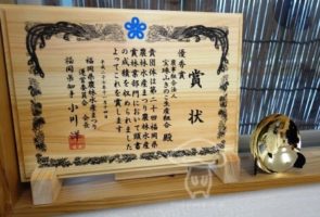福岡県の県章である梅の花が形どられた金杯も授与いただきました。